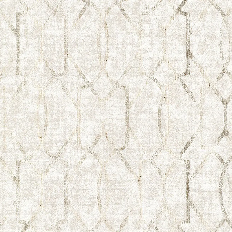 The classic trellis is given a contemporary upgrade with this wallpaper. A blend of cream and khaki is overlaid with a curved and angular lattice composed of glittering dashes of gold raised ink. Ziva is an unpasted, foil on non woven wallpaper.