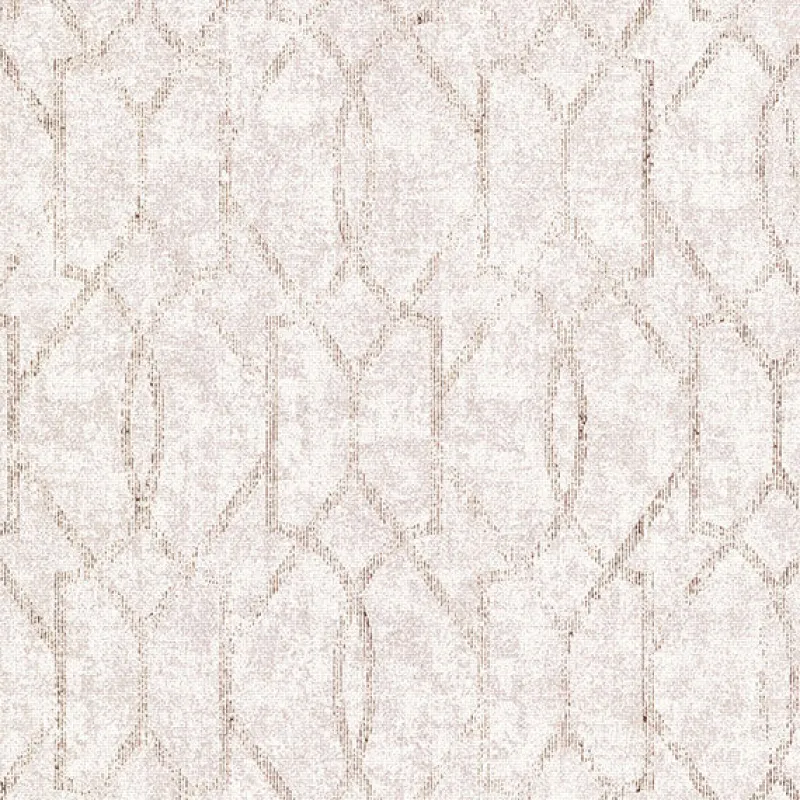 Classic elegance is given a modern update in this trellis wallpaper. The variegated cream and taupe background is overlaid with a curved and angular lattice composed entirely of dashes of rose gold raised ink. Ziva is an unpasted, foil on non woven wallpaper.