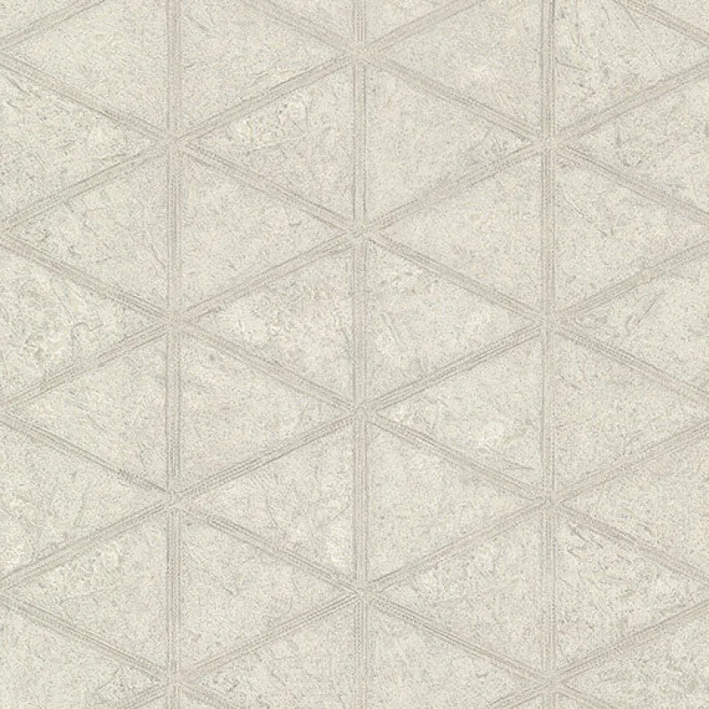 Give your space antique charm with modern flair with this geometric wallpaper! The white, triangular tiles are framed with intricate raised ink detailing and washed in a shimmering platinum finish. Mayari is an unpasted, foil on non woven wallpaper.