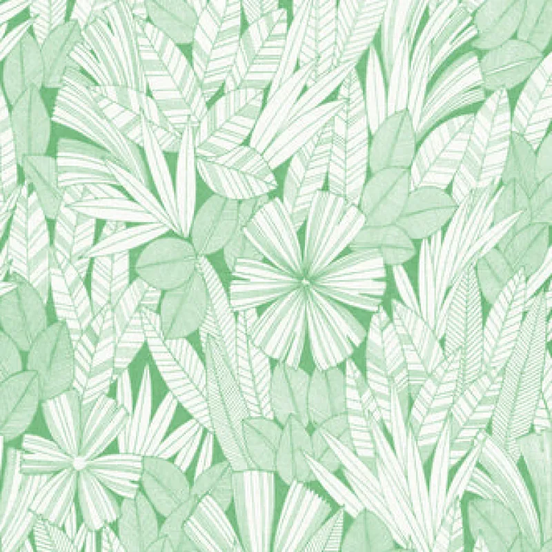 Add color and cheer to your walls with this soothing botanical wallpaper. The medley of leafy plants are shaped by simple green lines, the negative space between plants filled in with a matching green. Bannon is an unpasted, non woven wallpaper.