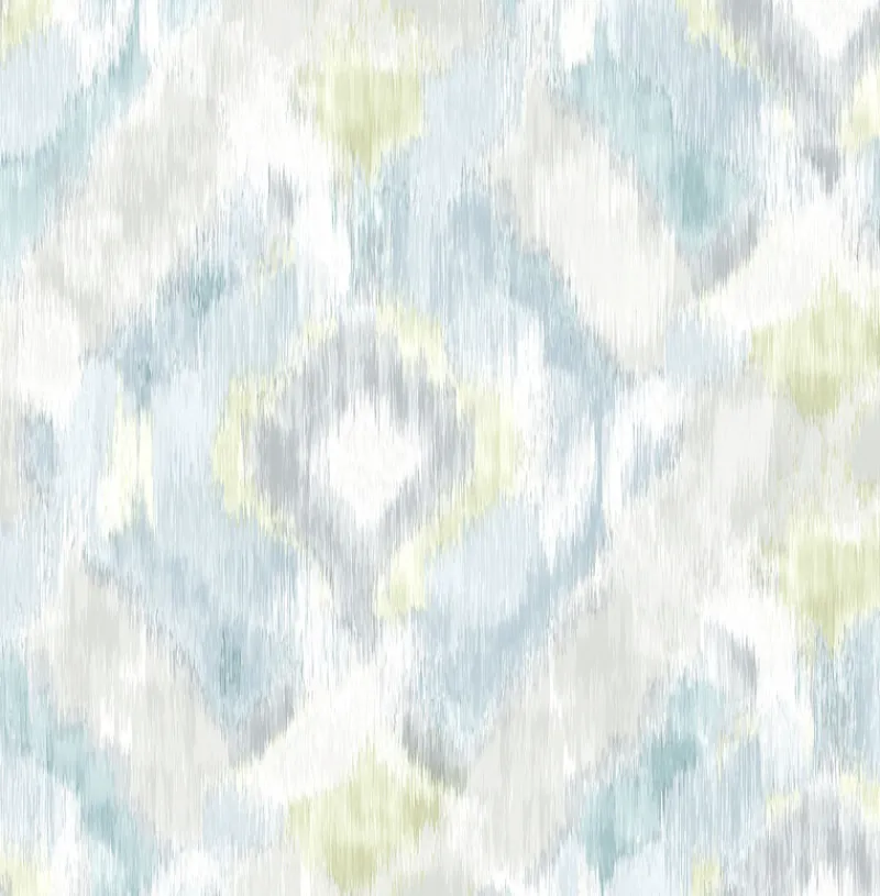 Adorn your walls in a stunning watercolor wash with this abstract ogee pattern. Soft teals, blues, greys, and chartreuse blend harmoniously together. Mirage is an unpasted, nonwoven wallpaper.