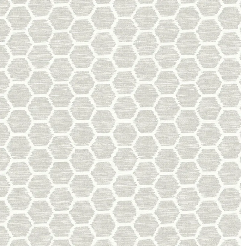 Flecks of mica are infused throughout the entire wallpaper, turning dove grey into eye-catching silver and white to shimmering pearl. The honeycomb pattern also features a raised ink effect. Aura is an unpasted, non woven wallpaper.