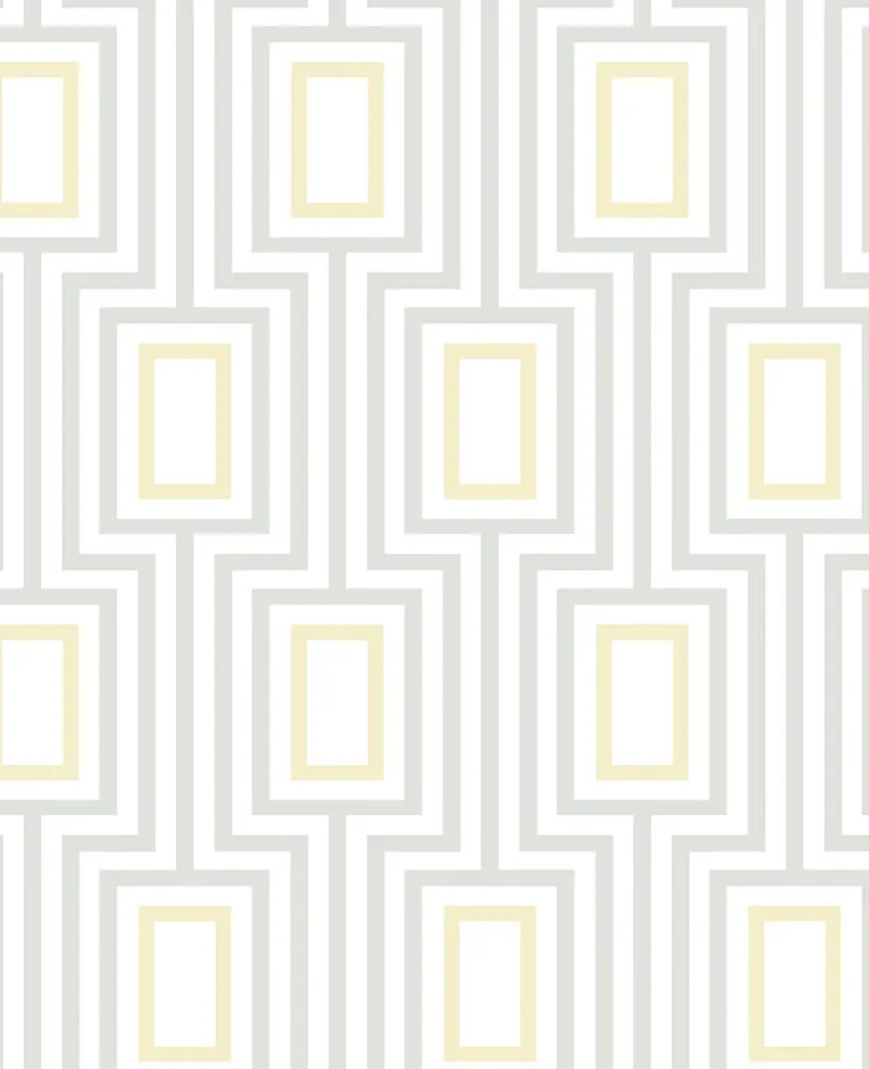 This retro-inspired, boxy geometric instantly draws the eye and visually heightens a space. The citrine and grey combination is unexpectedly elegant. Metro Mod is an unpasted, nonwoven wallpaper.