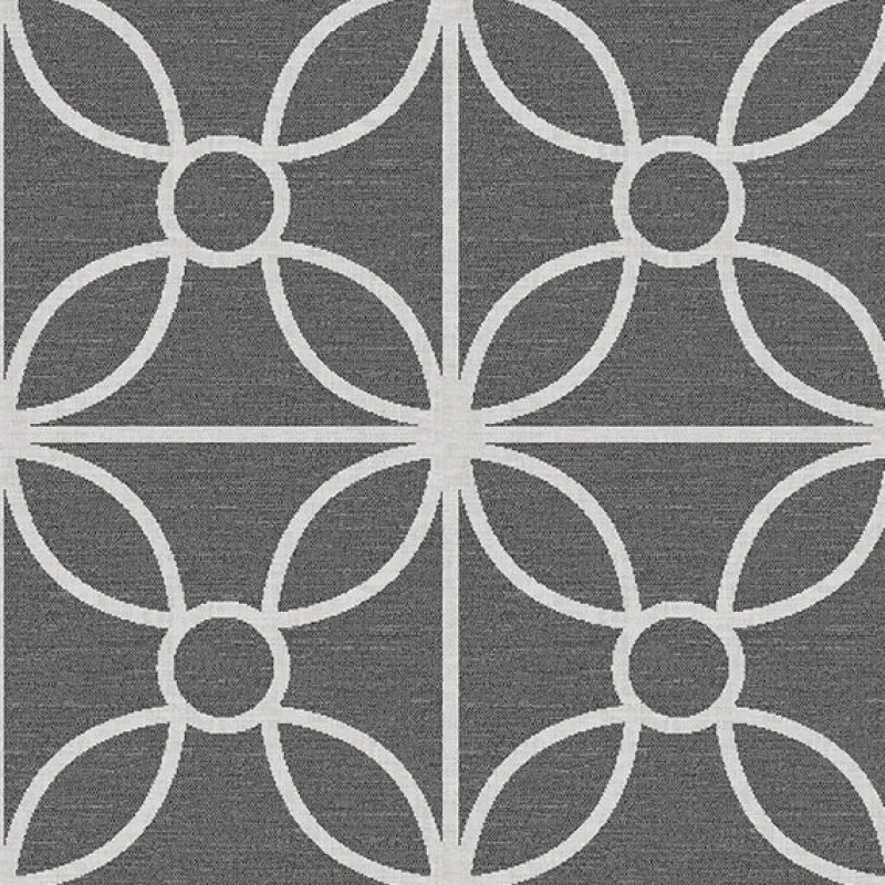 White squares tile up and down and create contemporary quatrefoils in this fun dark grey wallpaper.
