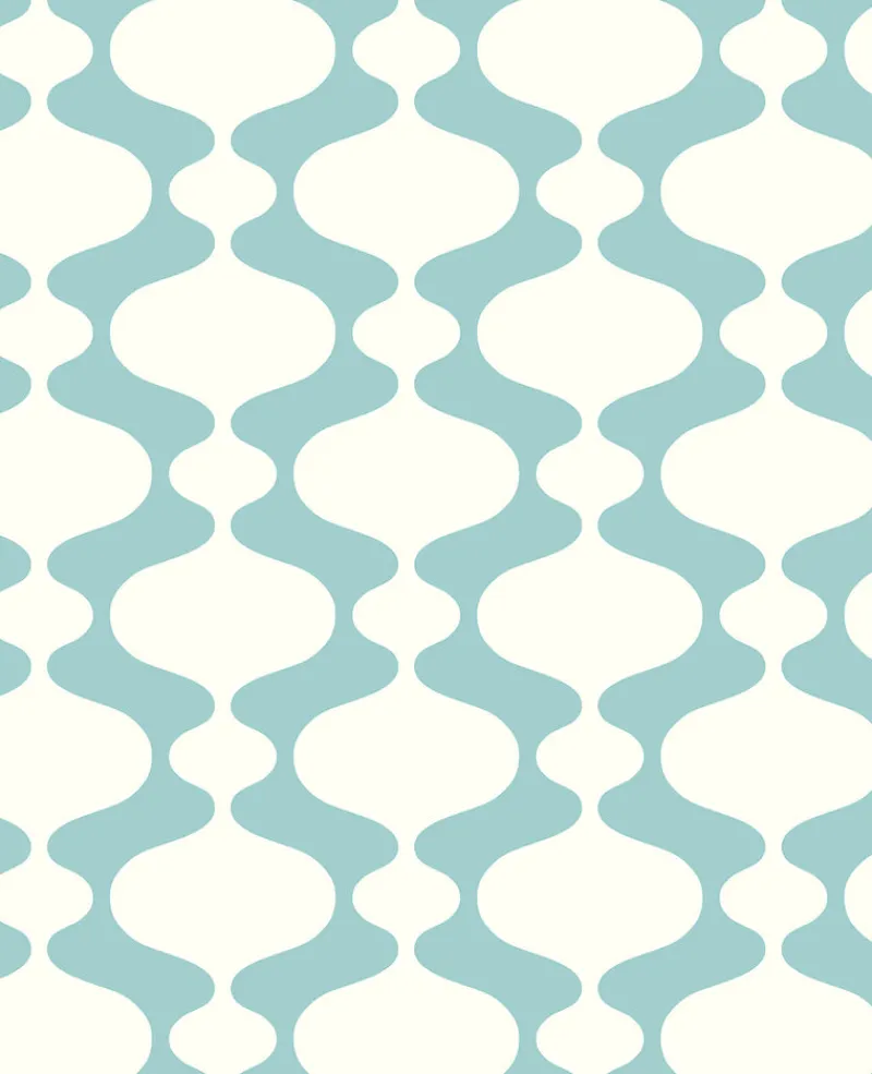 This wallpaper captures the carefree spirit of the 60s with its retro-inspired design. The ogee pattern is printed in raised turquoise ink for a textural feel. Emilio is an unpasted, non woven wallpaper.
