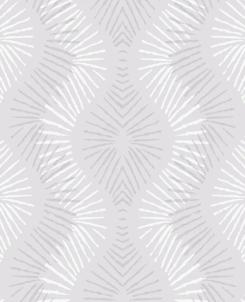 Exquisite clear beads and strokes of ice blue form an alternating ogee pattern. The metallic silver background shimmers in the light. Feliz is an unpasted, non woven wallpaper.