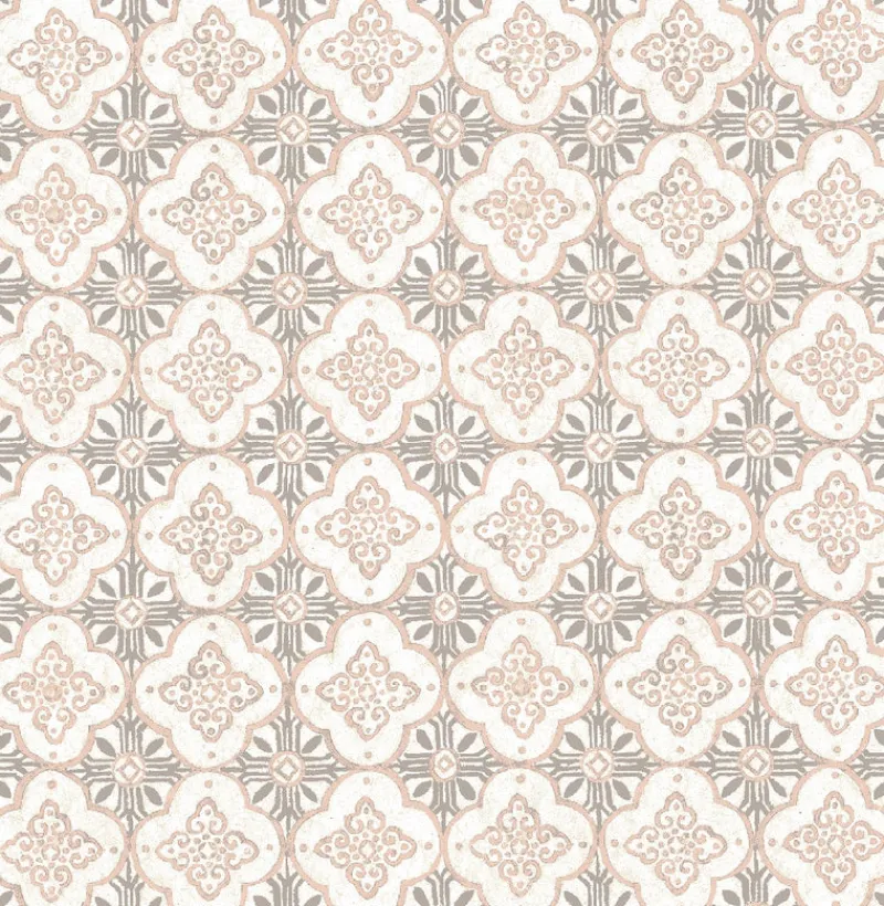 With influences from Spain and Morocco, this ornate geometric gives walls an authentic look and feel. A beautiful tile effect is artfully done, while a chic patina provides the finishing touch.