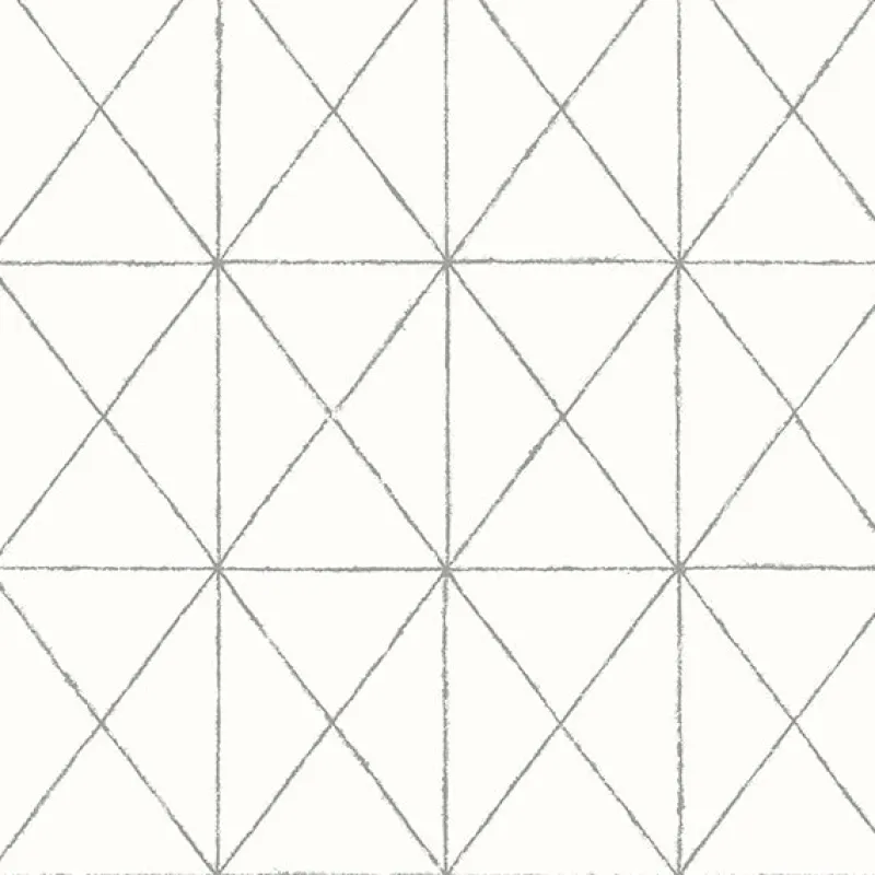 Shimmery silver triangles create larger rectangles in this geometric, simple white wallpaper.