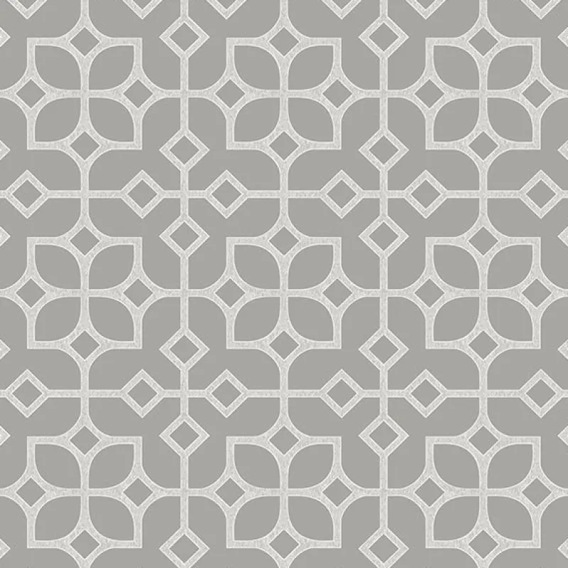 Shimmery silvery grey lattice on a grey background creates a fun classic wallpaper with a contemporary pop.