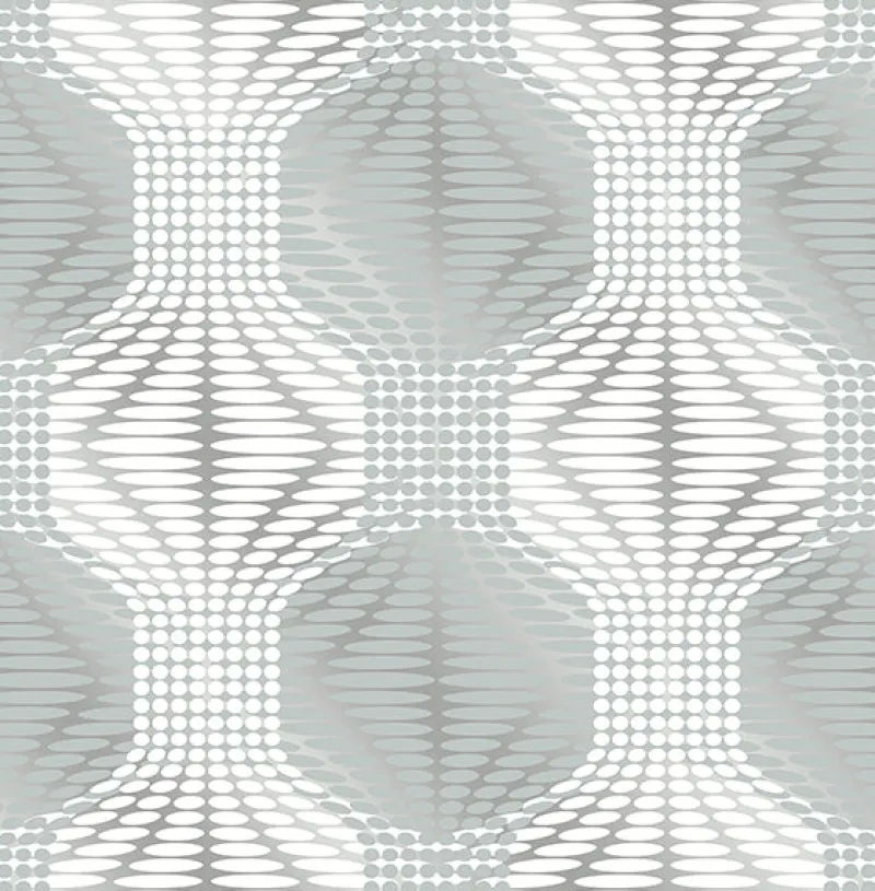 Metallic blue grey and light grey orbs give this geometric wallpaper a girly, modern feel.