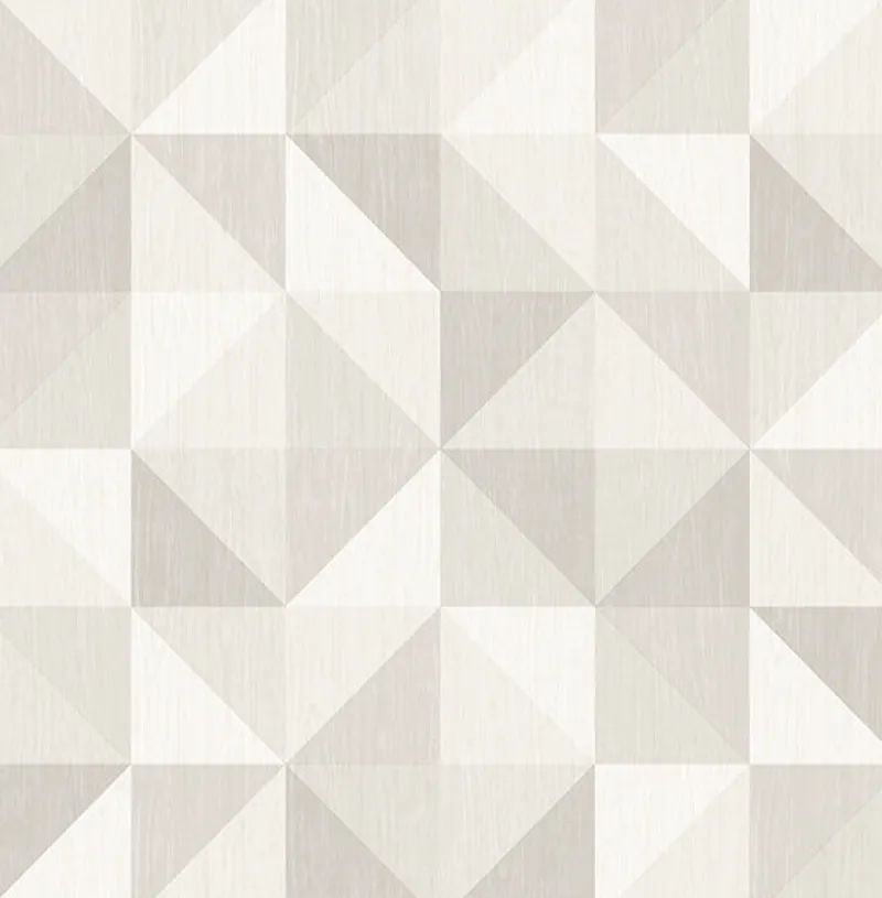 Grey and white triangles fit together to make squares in this faux textured contemporary wallpaper pattern.