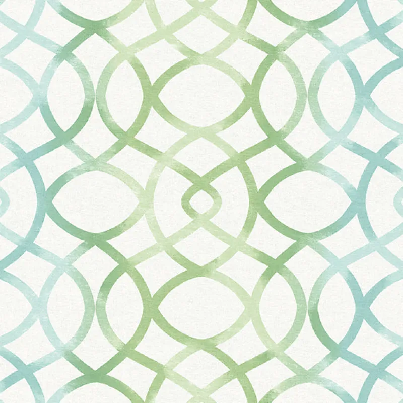 Geometric ogee ombre from green to blue in this neutral contemporary wallpaper print.