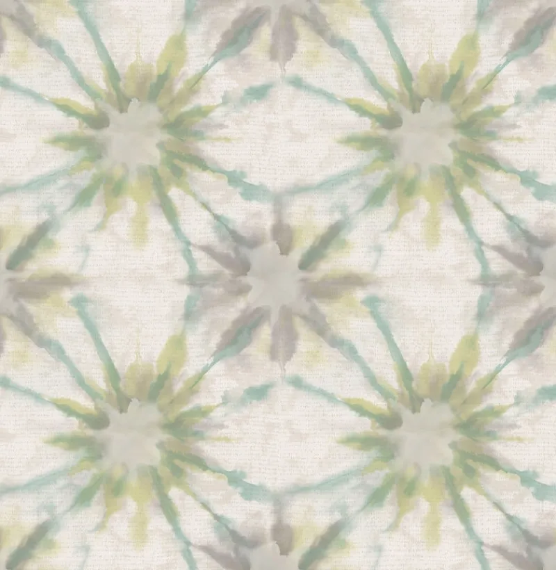Tie-dyed starbursts collect atop a textured landscape for a truly fascinating wallpaper design. A dreamy blend of turquoise, green and grey captivate the senses for a unique and unexpected accent in any room.