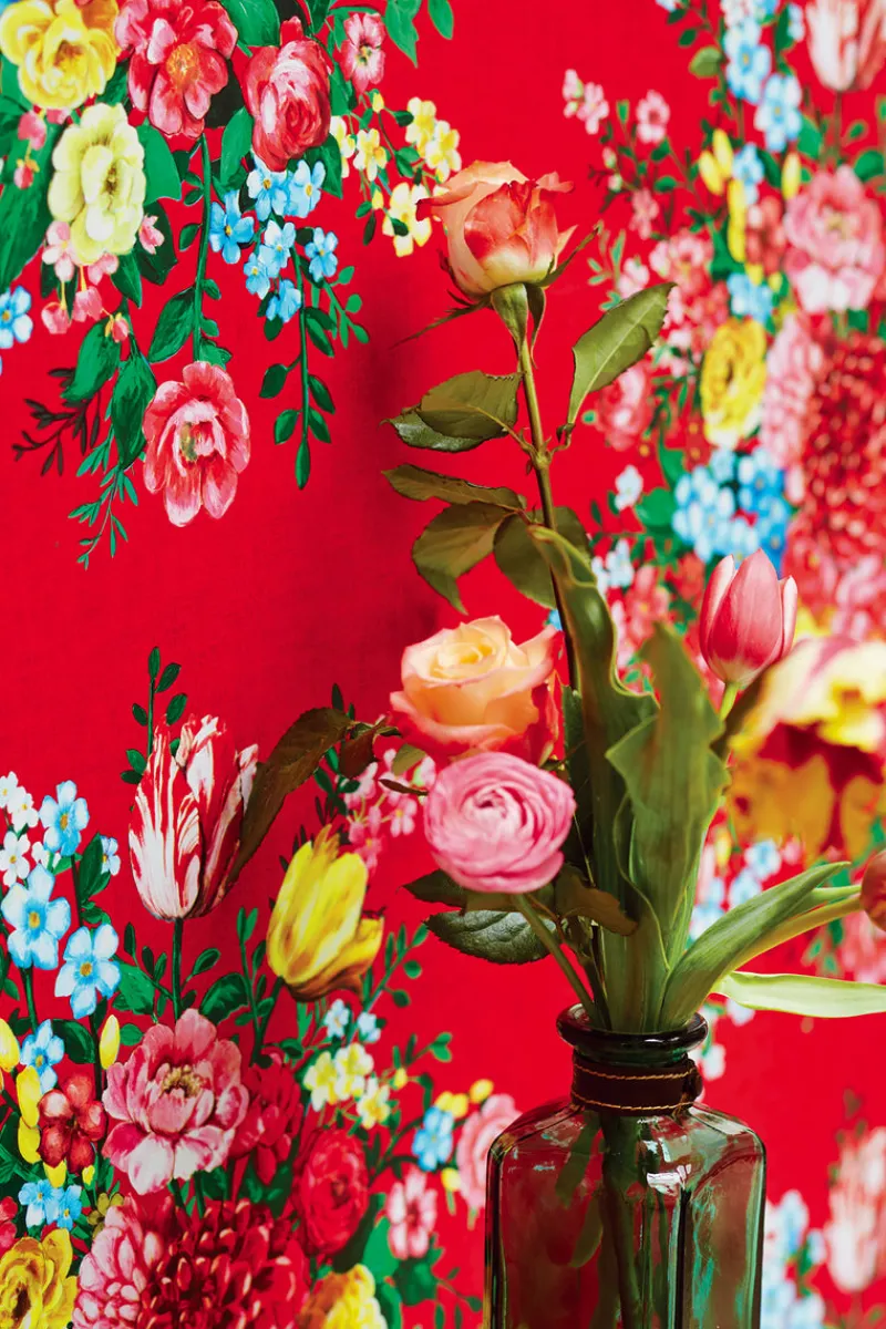 Resembling an artist’s canvas, this floral wallpaper designed in a dazzling red hue, opens your home to the freshness of the outdoors and the beauty that lies all around us.
