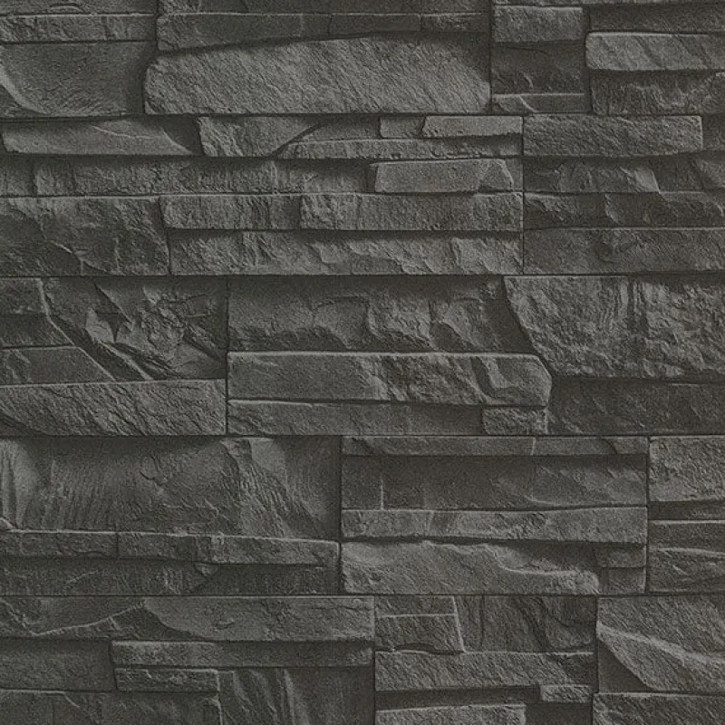 Modern and sleek, this faux slate wallpaper is perfect for creating a feature wall. Its heavily textured and stacked stone pattern gives it a contemporary and edgy style. Collegiate is an unpasted, non woven wallpaper.