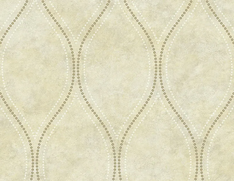 With raised inks and shimmering gold metallic details, this beige wallpaper resembles stone. A captivating ogee print made of tan and white dots will add a sense of movement to your walls. Eira is an unpasted, vinyl wallpaper.