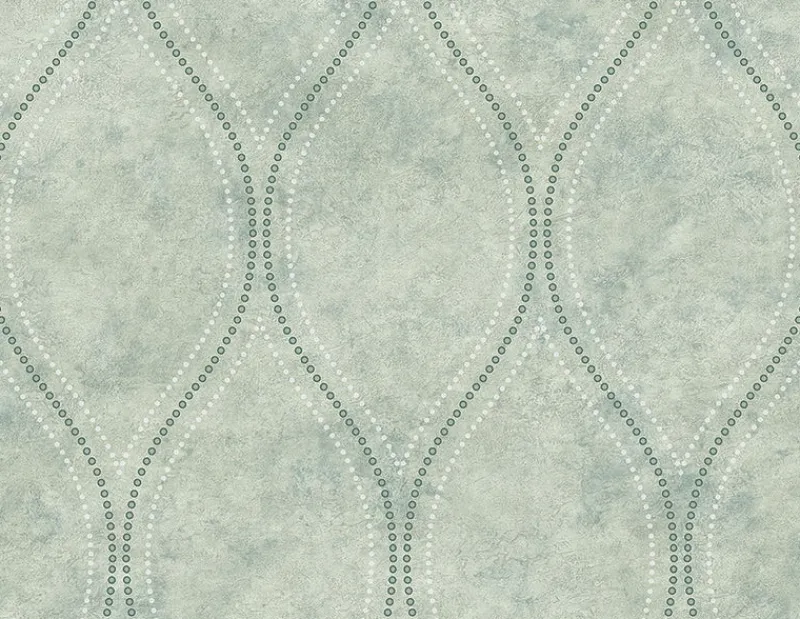 An ogee print made of white and teal dots loops about a seafoam background in this captivating wallpaper. With raised inks and soft shimmering details, this design is made to resemble marble. Eira is an unpasted, vinyl wallpaper.
