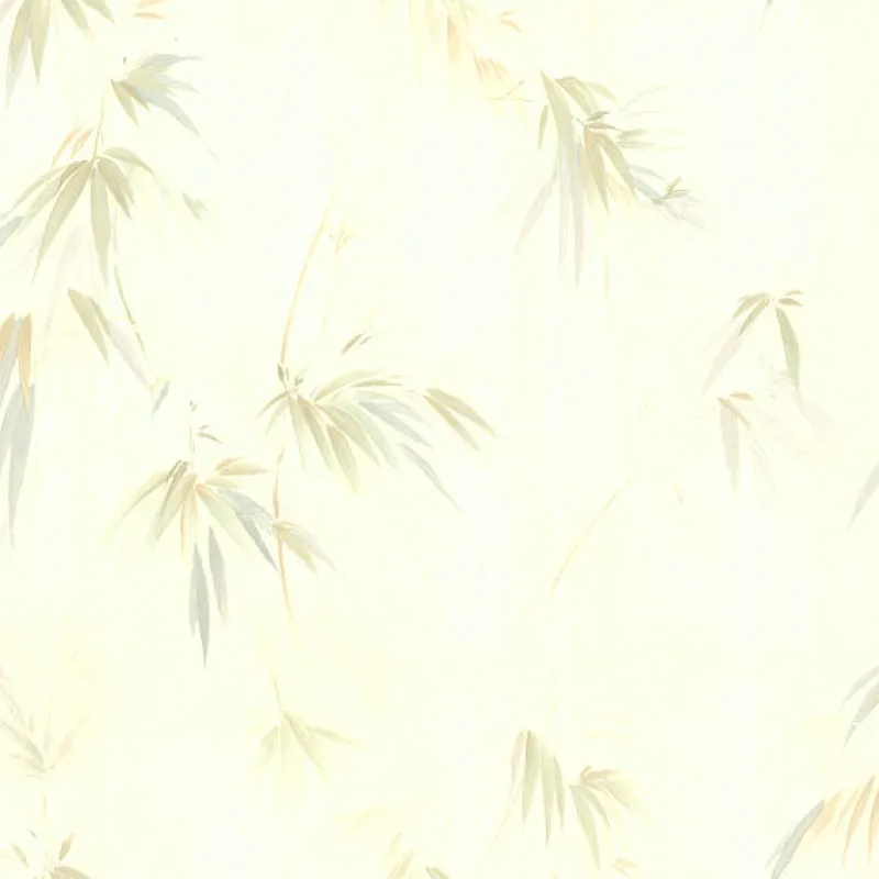 Stunningly sophisticated, this wallpaper shines with pearlescent inks. The bamboo pattern is accented by soft blues and greens, blending into the tonal beige background. A woodgrain texture and raised ink details give this pattern dimensional interest.
