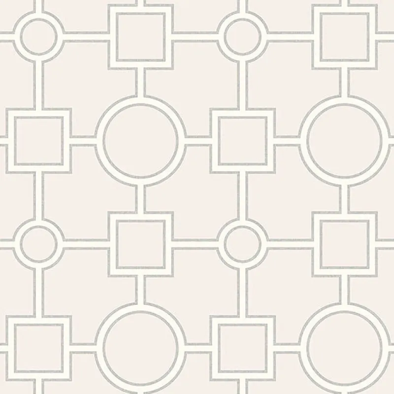 A geometric wallpaper perfect for a modern home. This design uses muted shades of light grey and cream for a neutral palette. Silver lines add a subtle shimmer effect.