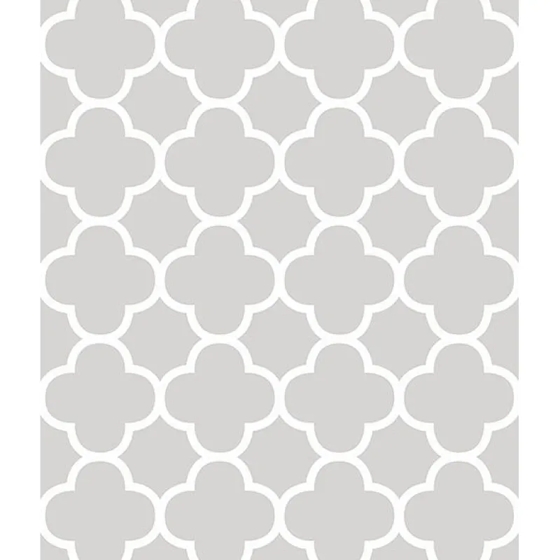 A clean and simple wallpaper that makes a big impact. Design a modern home around this contemporary quatrefoil. The pattern is crisp in white over an elegant grey background.