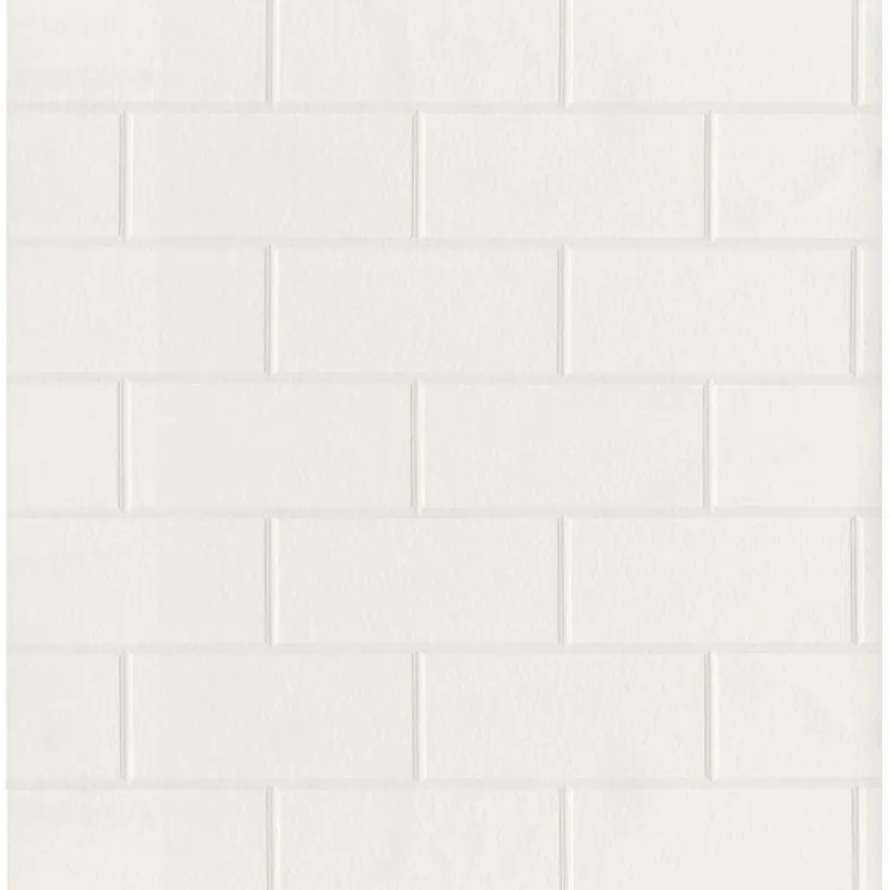 This paintable wallpaper is a perfect texture for walls. Left white, it has the look of a sleek sunway tile. Painted red, it can look like brick. This versatile design can tranform into any number of prints.
