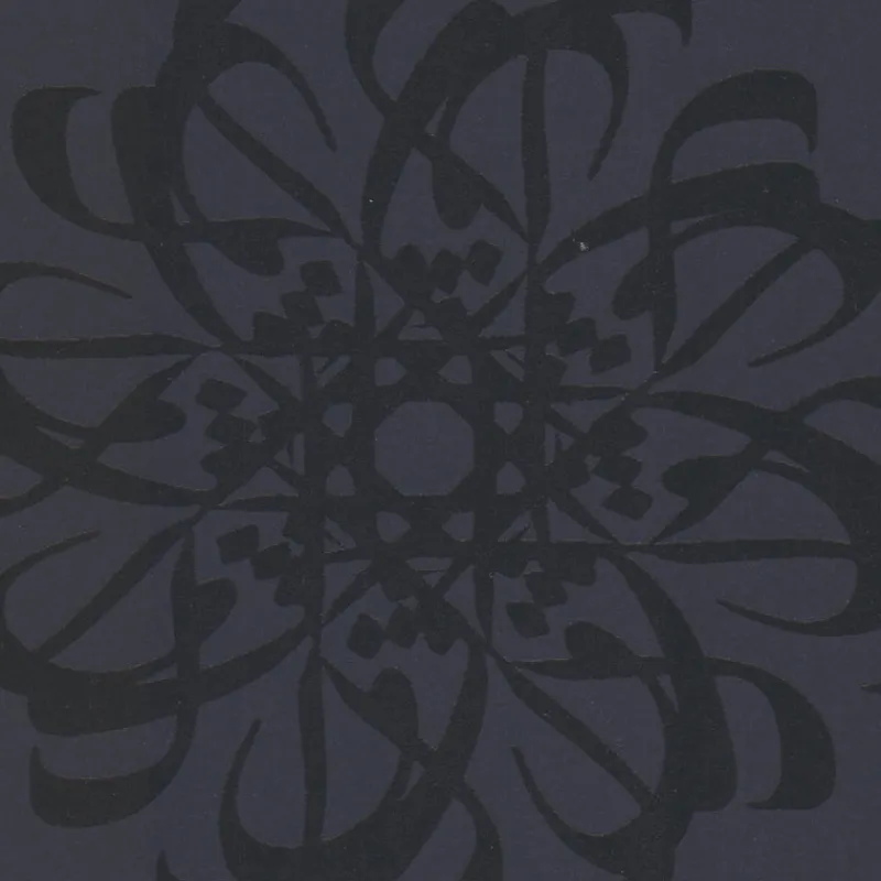 Sparkly starlight and glossy black ink add intrigue to this modern floral geometric. The design cultivates a modern Arabic sophistication, with a luxe printing techniques on a midnight sky.