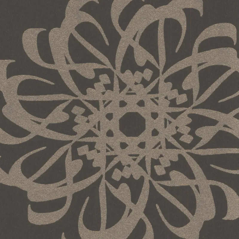 Black is dramatic and sophisticated, especially when artfully printed with metallic silver and dove grey suede. This modern wallpaper features an abstract floral geometric, reminiscent of a mehndi.