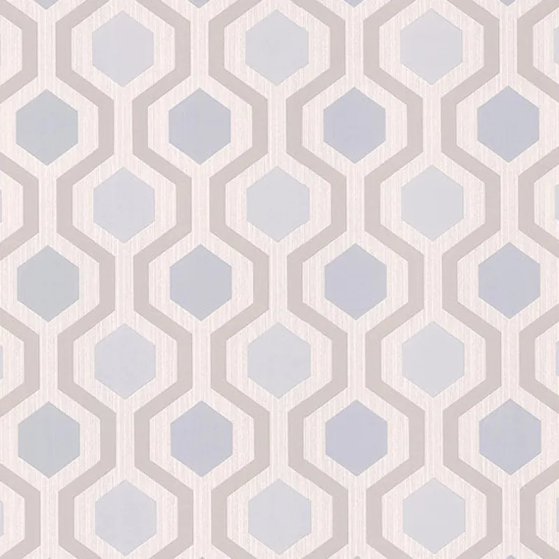 Create a soothing look with this light blue and taupe wallpaper. Its embossed pattern will add dimension to walls, while its geometric design will give your room a retro look. Kelso is a prepasted, expanded vinyl wallpaper.