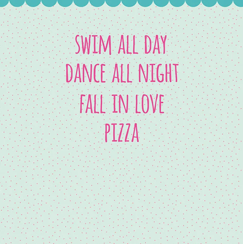 This lighthearted mural is the perfect match for the free-spirited decorator. Plans for the quintessential adventure are laid out in hot pink font over sea foam backdrop framed up top by scallops and speckled with pink polka dots. Comes in 6 panels that measure 9 feet 2 inches tall x 9 feet wide when assembled.