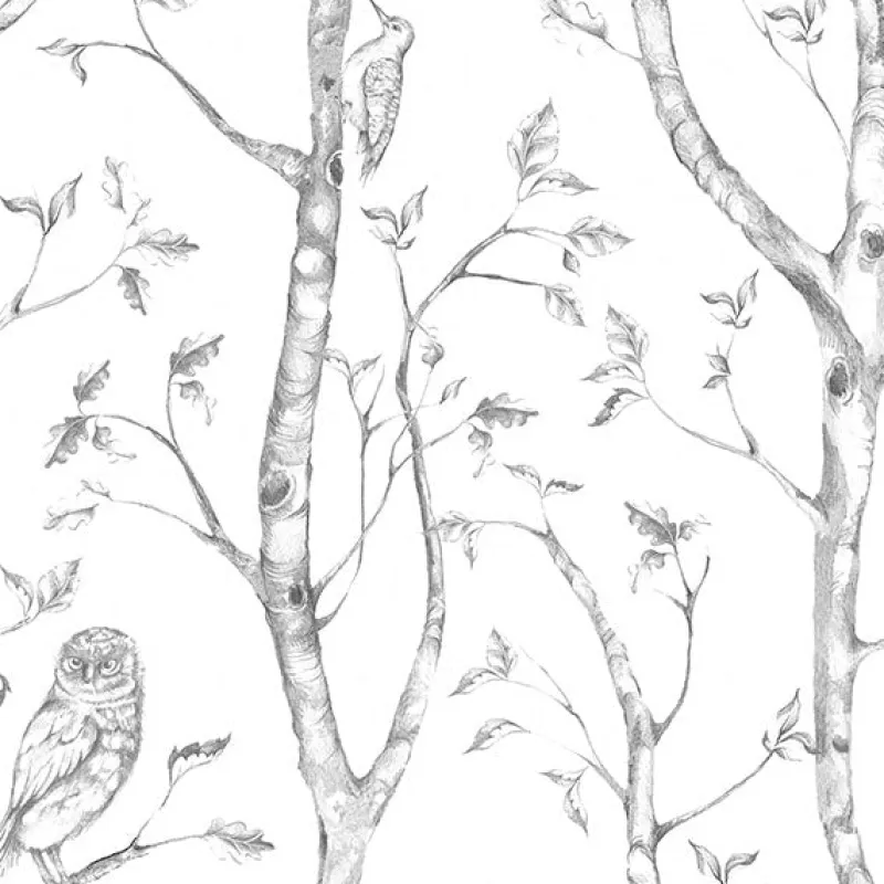 Snowy owls watch over your little one as they rest their eyes. Birch trees line the walls, bringing nature inside. This wallpaper is done in an innovative peel and stick material, making it faster and easier than ever to transform a room. If you change your mind, it comes down in seconds—damage free! Comes on a 20.5 in x 18 ft roll.