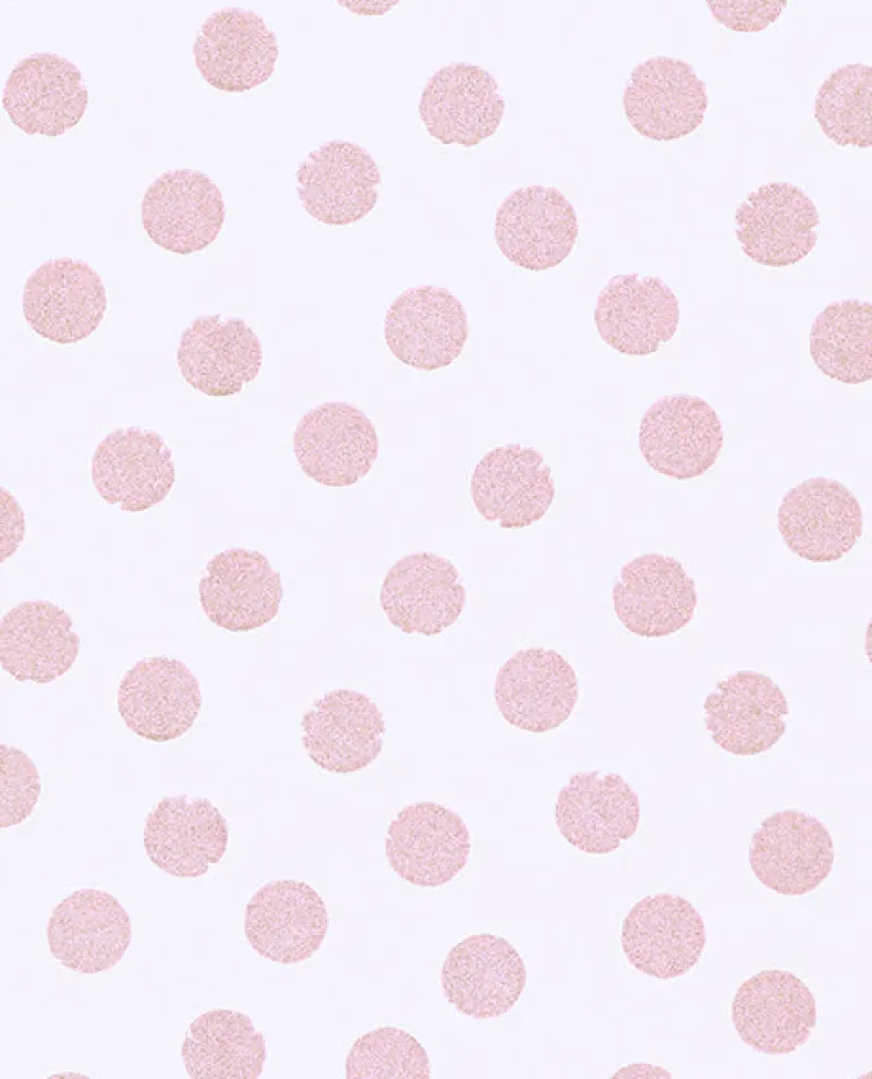 This pink polka dot wallpaper is cheekily cheerful. Each dot is detailed with gold and silver glitter for an eye-catching effect.