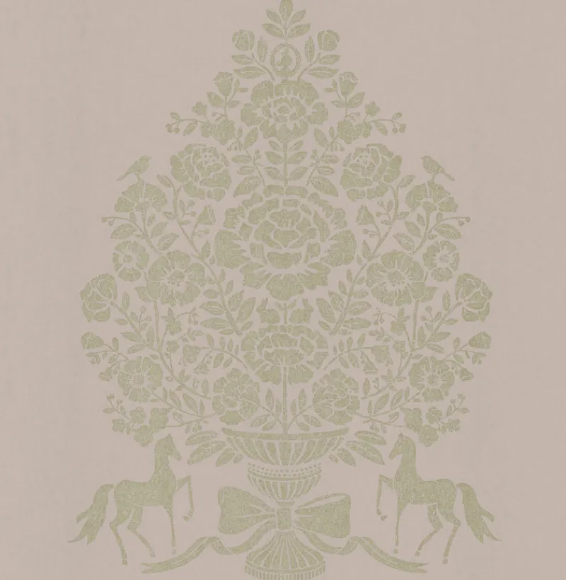 A chic and sophisticated decor statement, this glittering damask is truly breathtaking. A pewter base accented in silver makes for a dazzling match.