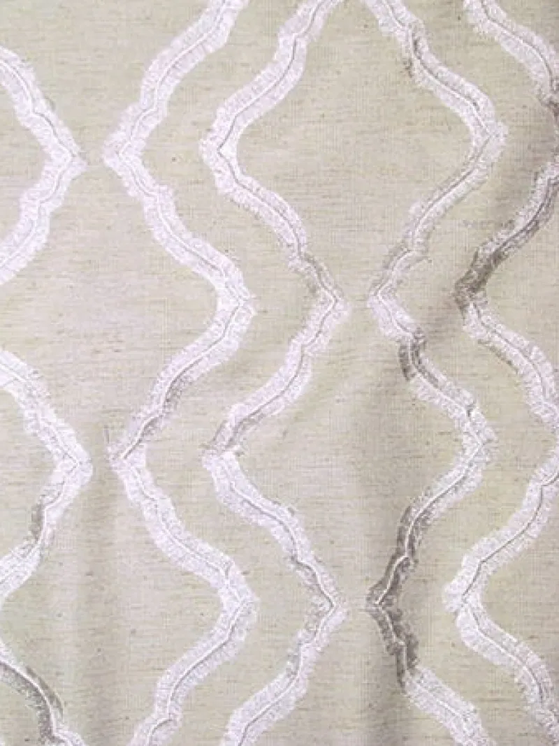 Fil Coupe 130 White Embroidered Fringe Geometric Broken Ogee Covington Fabric