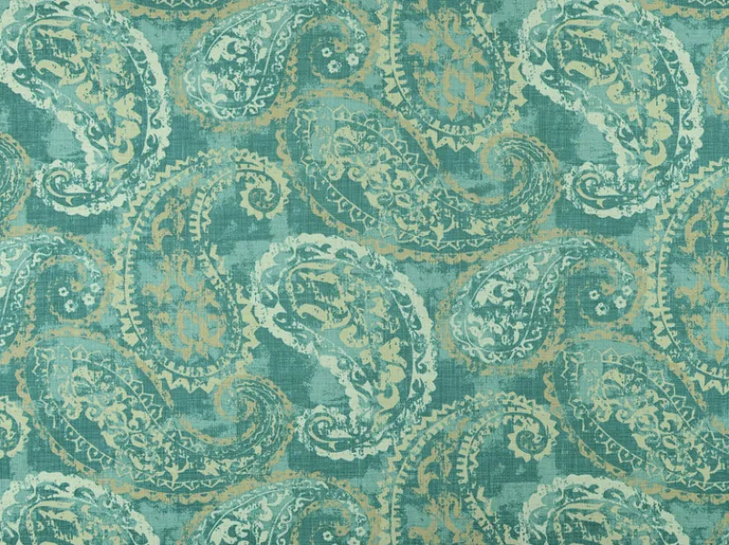 Palera Mineral is a bold dusty turquoise blue paisley print fabric by Jennifer Adams Home from Covington.