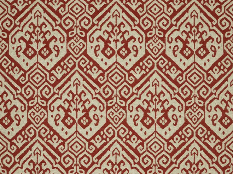 Parrot Key Antique Red is a fun bold red ethnic damask print outdoor fabric from Covington.