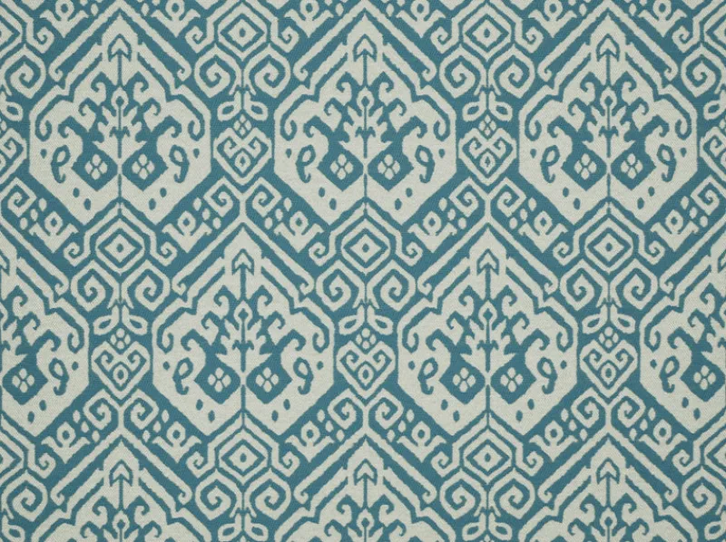 Parrot Key Chambray is a cool light blue ethnic damask print outdoor fabric from Covington.