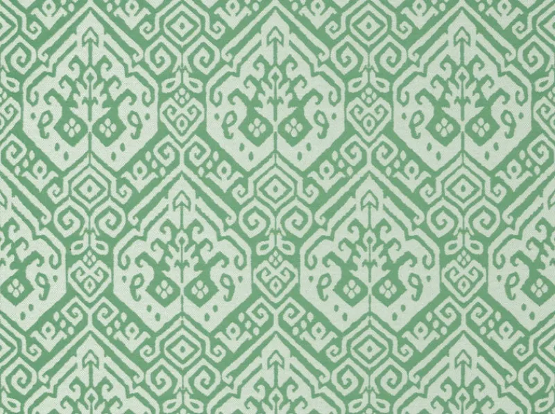 Parrot Key Jade is a pretty light green ethnic damask print outdoor fabric from Covington.