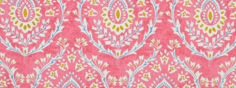 Add a touch of vintage charm to your home decor with Shyla 713 Roseus a pink, blue and gold upholstery fabric. Perfect for adding a pop of color and style to any room. Upgrade your space with this unique piece!