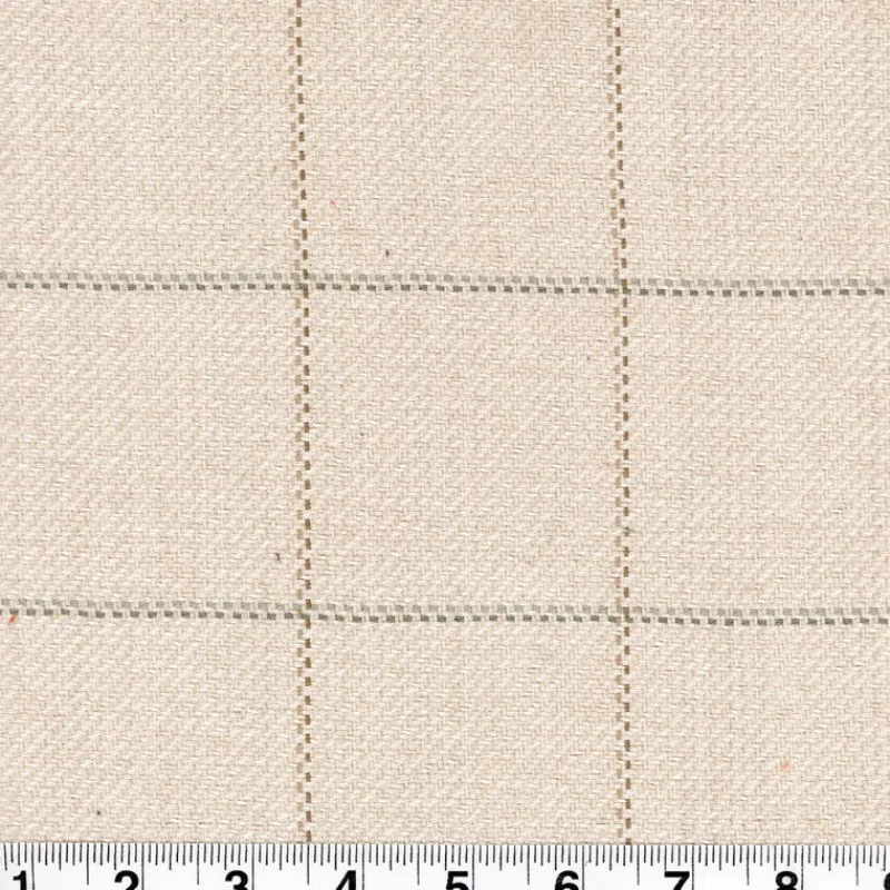 Frazier Flax is a pretty neutral cream, taupe, and grey large plaid fabric from Roth & Tompkins.