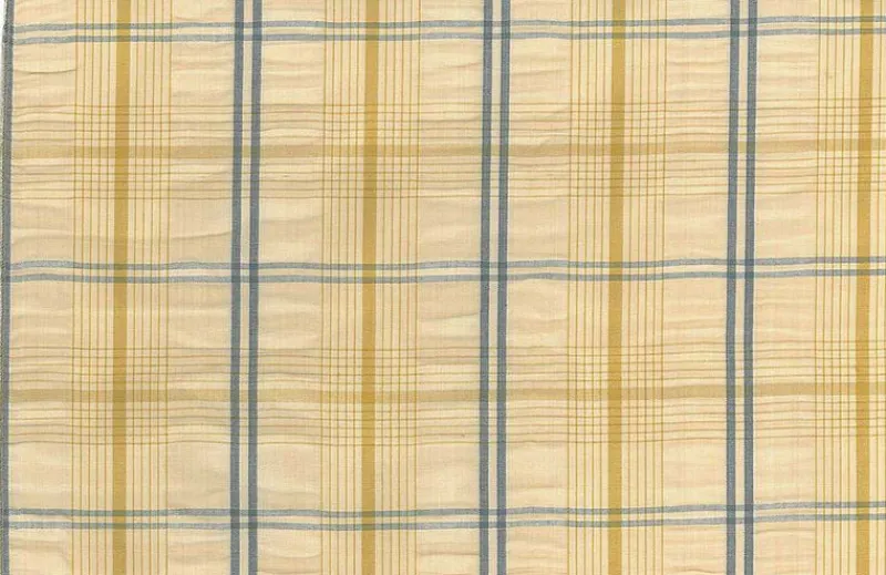 Laura Kiran Hampton Seersucker Yellow Blue Fabric> Plaids & Checks