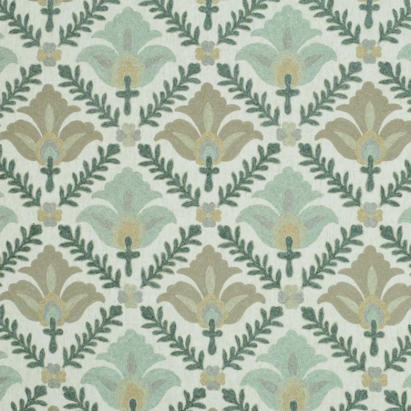 Sprinkle some floral charm into your home decor with the Angeline Celadon P/Kaufmann Fabric. This crewel embroidered fabric adds a touch of whimsy and texture to any room. Let your creativity bloom with this playful and unique design.