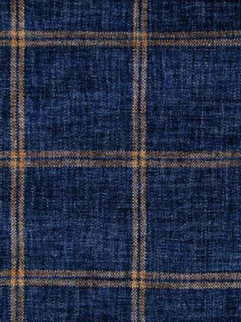 Campbell Midnight Dark Blue Soft Chenille Window Pane Plaid Upholstery Kaufmann Fabric