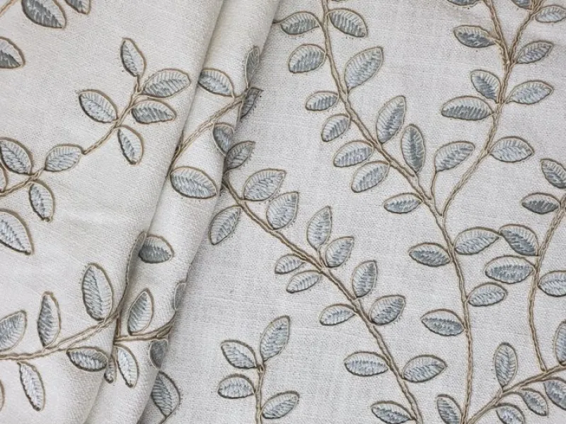 Garden Vine Sky Light Blue Embroidered Leaf Vine P Kaufmann Fabric