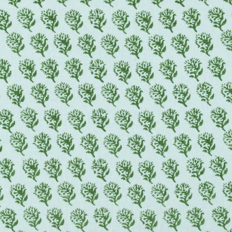 This fabric features a small flower print that adds a touch of whimsy to any project. Perfect for adding a pop of color and personality to your home decor or DIY projects. Let your creativity bloom with Laila Green P/Kaufmann Fabric!