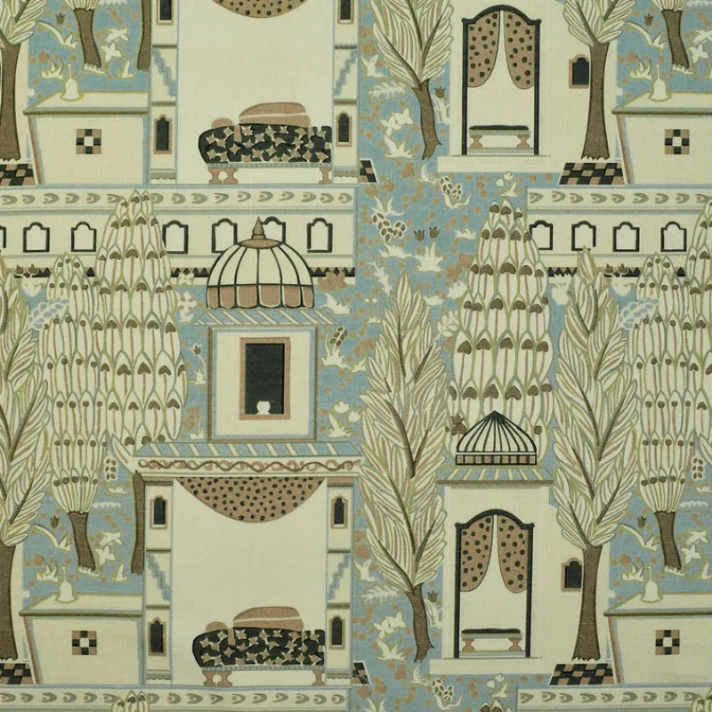 Transform your space with the exotic allure of Marrakesh City Dove Upholstery Fabric. This captivating fabric features a vibrant pattern inspired by Middle Eastern architecture, reminiscent of the enchanting cityscapes from Arabian tales. The design showcases intricate motifs of domed rooftops, elegant arches, and vibrant geometric details, bringing a sense of magic and wonder to your interiors. Perfect for creating a bold, cultural statement in any room.