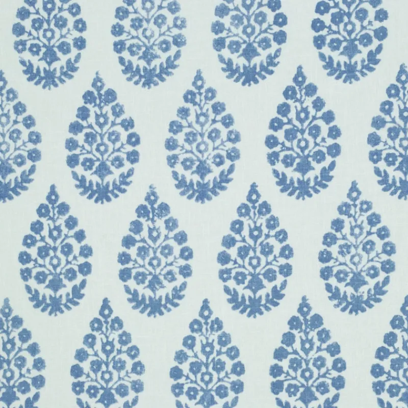 Meera Chambray Light Blue Floral Teardrop Stamped P Kaufmann Fabric