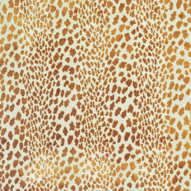 Meowww Amber P Kaufmann Fabric: Experience lavishness with a side of feline flair. Embrace chicness with velvet spots that conjure up the allure of sleek gold and white animal prints. Ideal for adding a touch of refinement and charm to any room. Upgrade your decor with this exceptional fabric now!