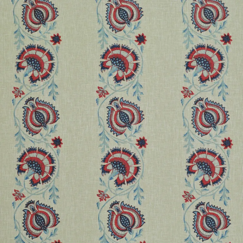 This lively Nalini Americana fabric features a blooming twist on traditional stripes. Perfect for adding a touch of playfulness and color to any space.