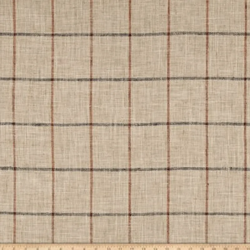 Pencil Me In Lakeland Dark Blue Orange Tan Window Pane Plaid P Kaufmann Fabric