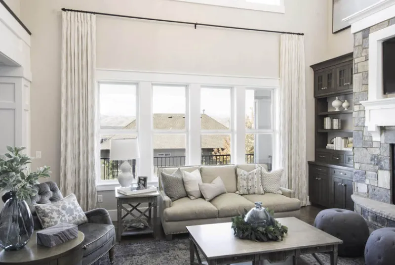 Rivermist Cloud is a cool neutral creamy taupe and silver contemporary sheer fabric from P Kaufmann.